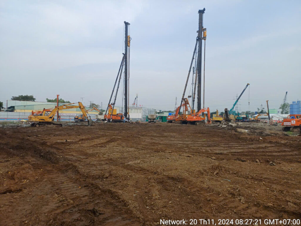 Thi công cọc vữa gia cố tải cho móng và sàn để thi công tường rào nhà máy – NHà Máy CHINHLUH